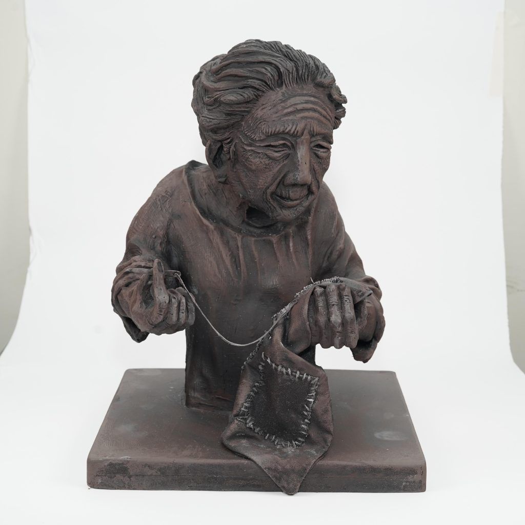 The first-place winner in Sculpture is “Pinagtagping Piraso” by Ivan Joysen Del Rosario of Rizal Technological University. The piece portrays a grandmother with Alzheimer’s, stitching together fragments of memory as an act of love and quiet resistance against time.