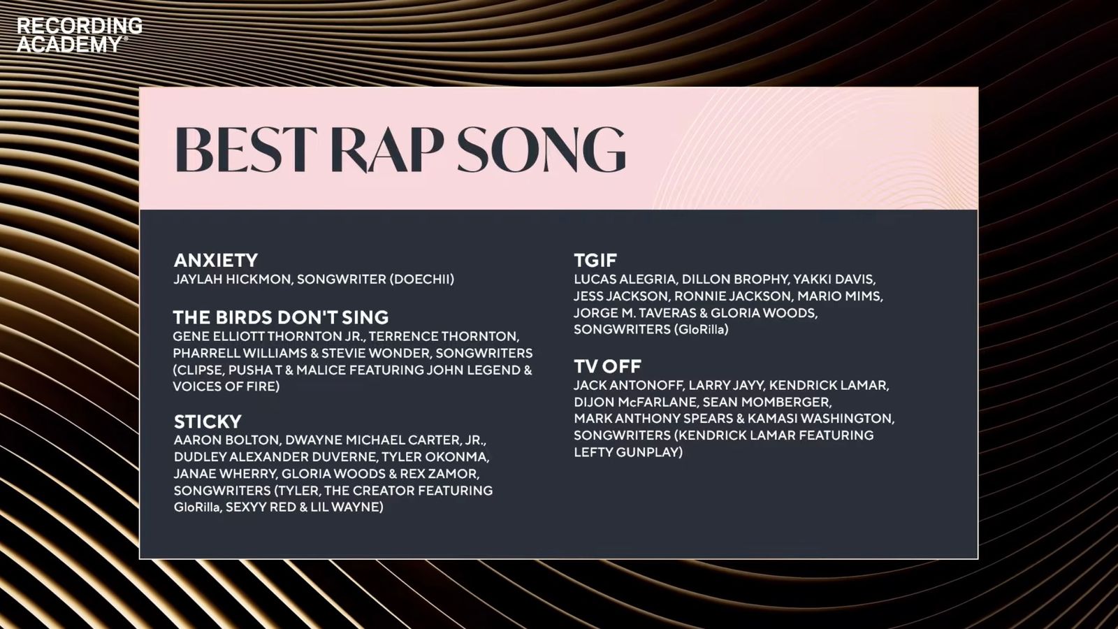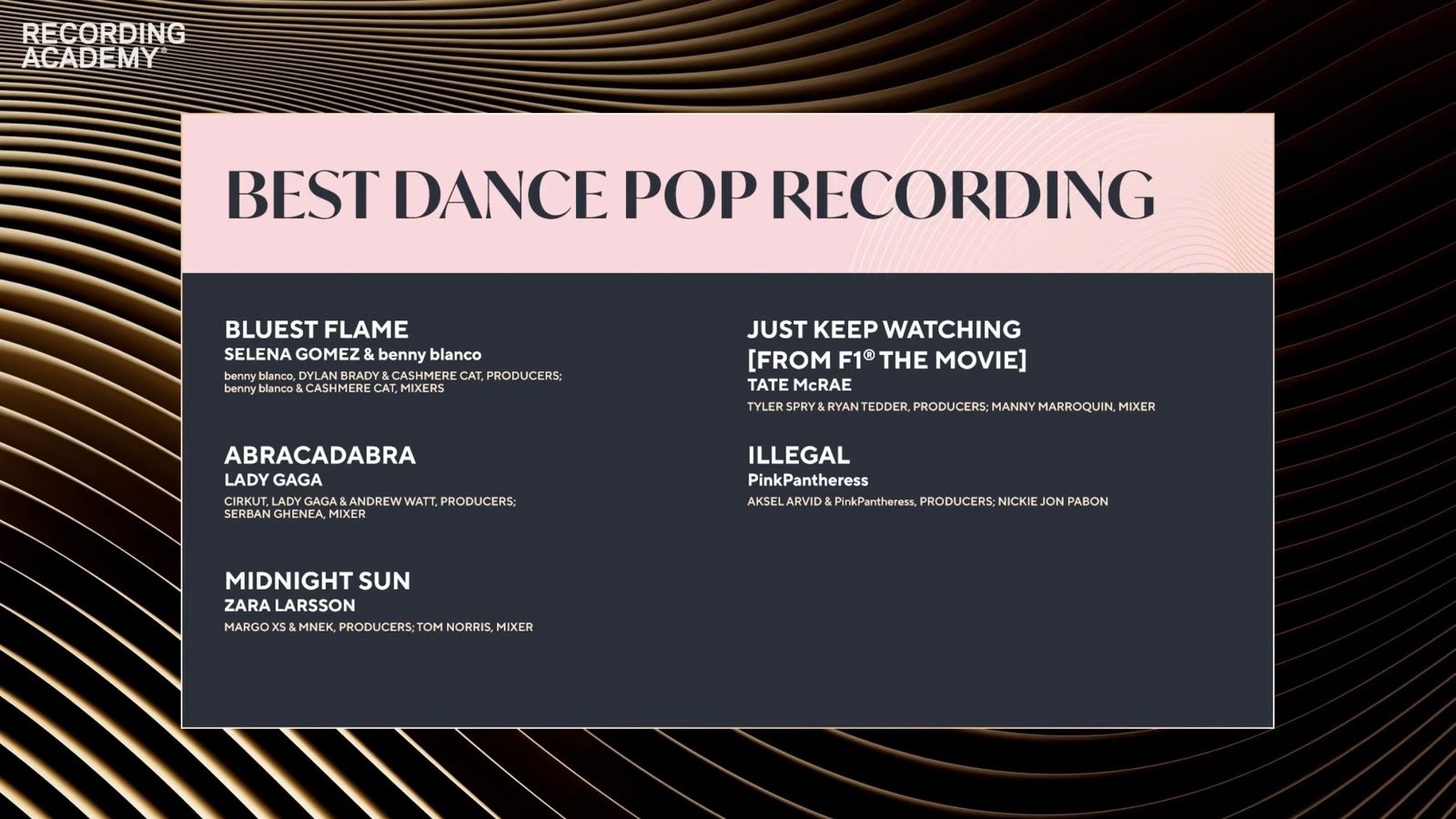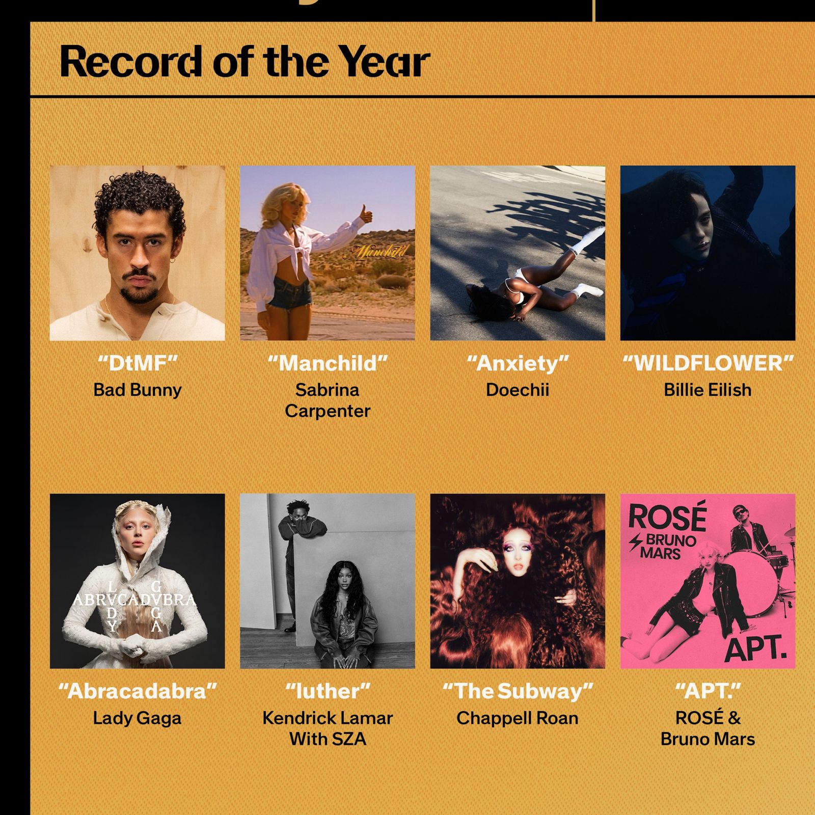 Coincidentally, Kendrick Lamar (GNX) and Lady Gaga’s (Mayhem) accompanying studio albums for the songs they previously received awards for are nominated for next year. Should they continue their winning streak, these would further decorate the status of their albums as Grammy-winning bodies of work.