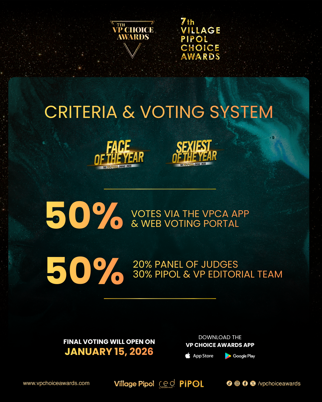 The Final 20 nominees in each category will head to the final voting round or the PIPOL’s Choice Voting from January 15 to February 10, 2026,  via the VP Choice Awards App and Web Voting Portal. The final ranking will also be based on the following criteria: